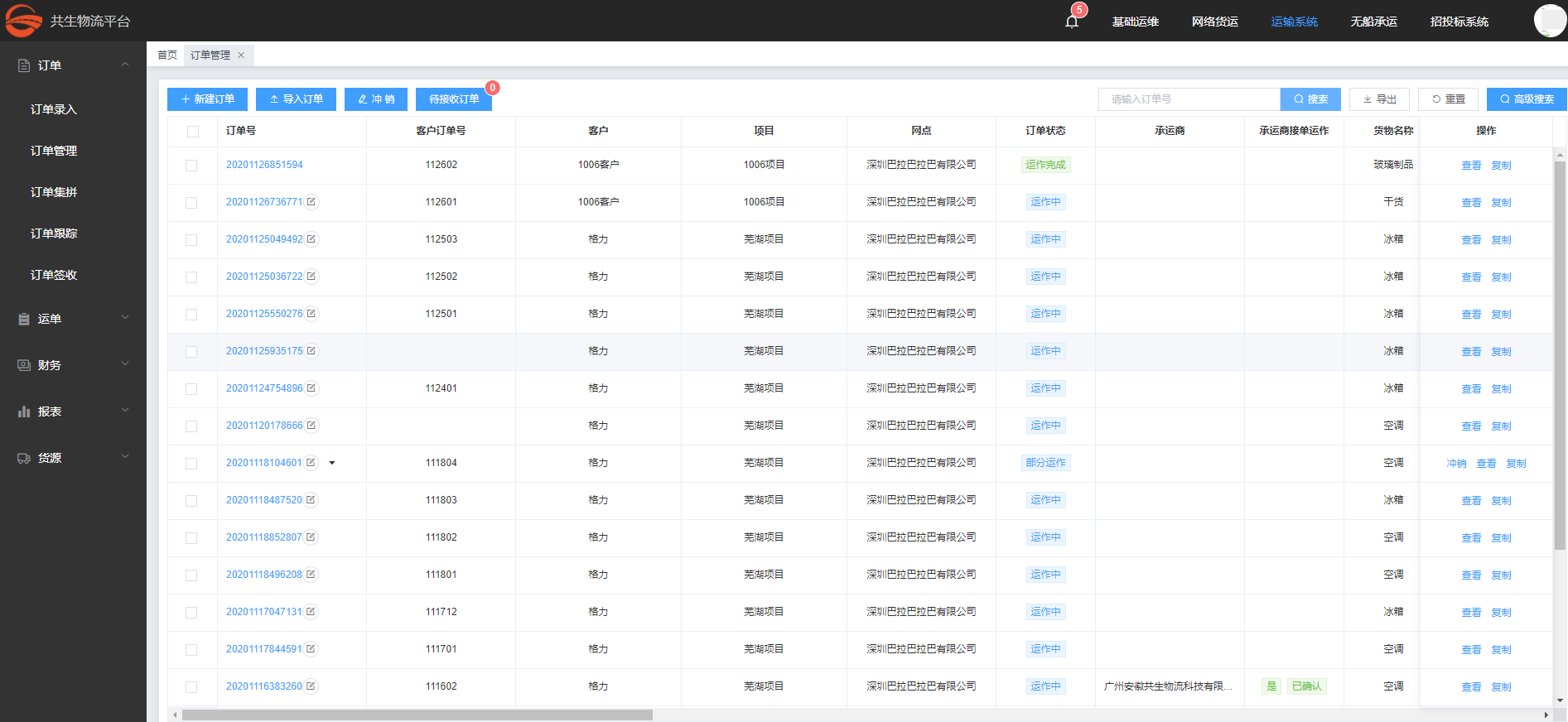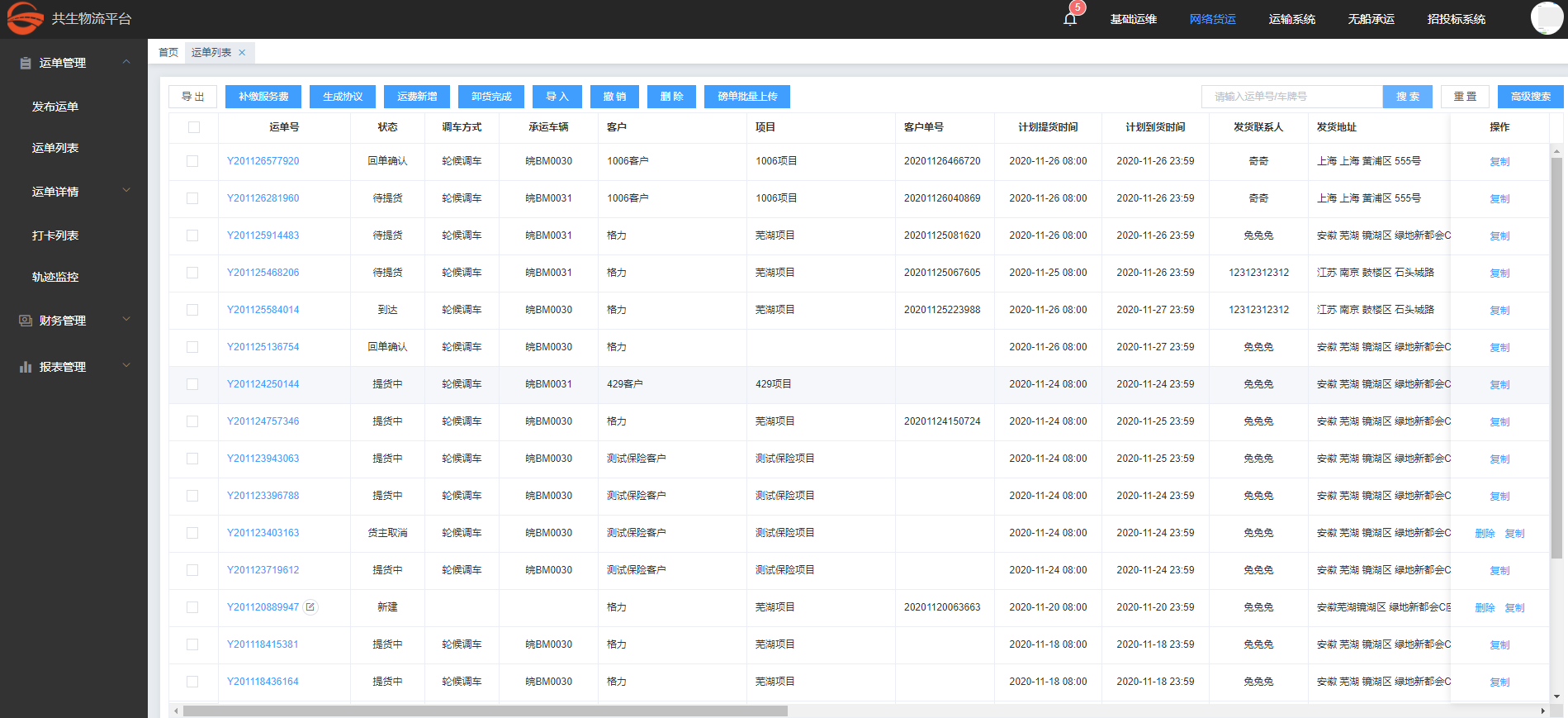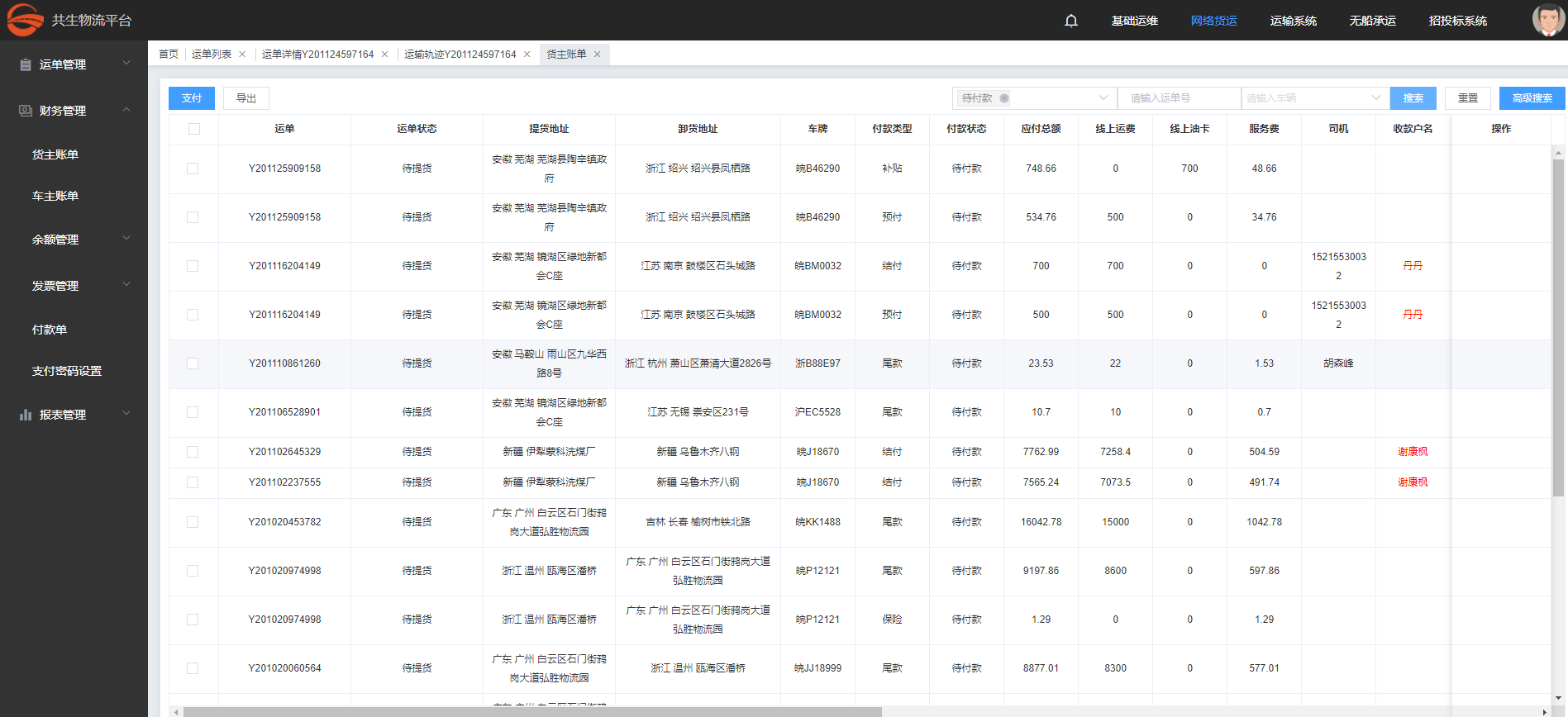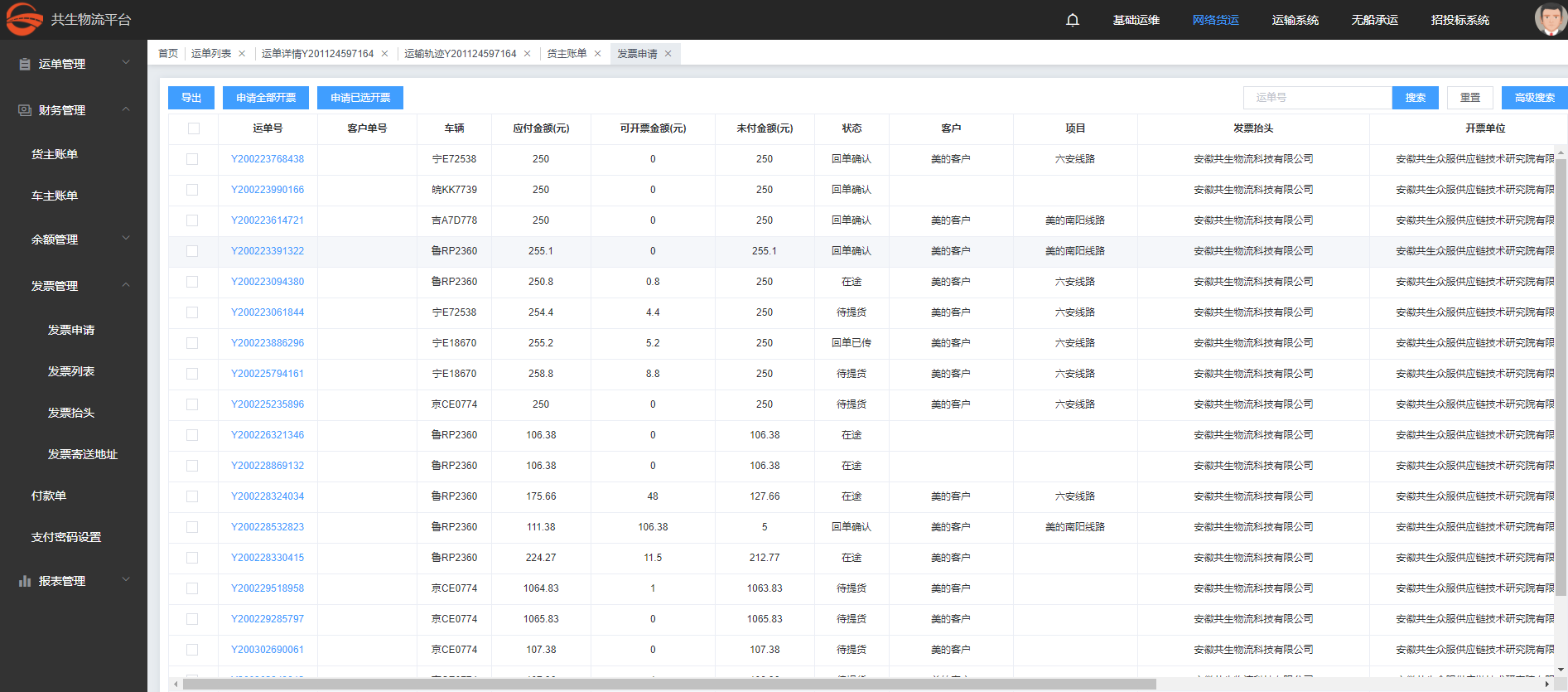 运输,管控,记账,结算,开票全链支持